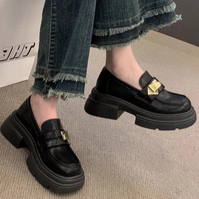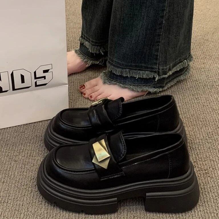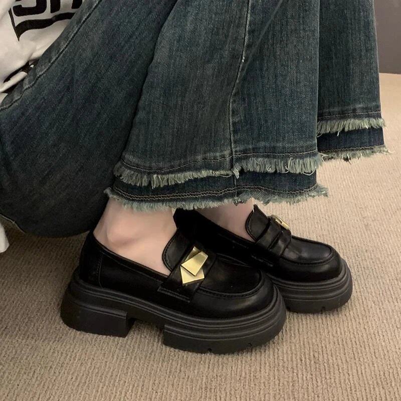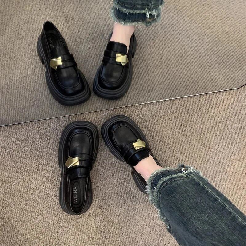 复古百搭一脚蹬玛丽珍乐福鞋 新款 2026年春季 黑色厚底英伦风小皮鞋
