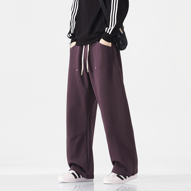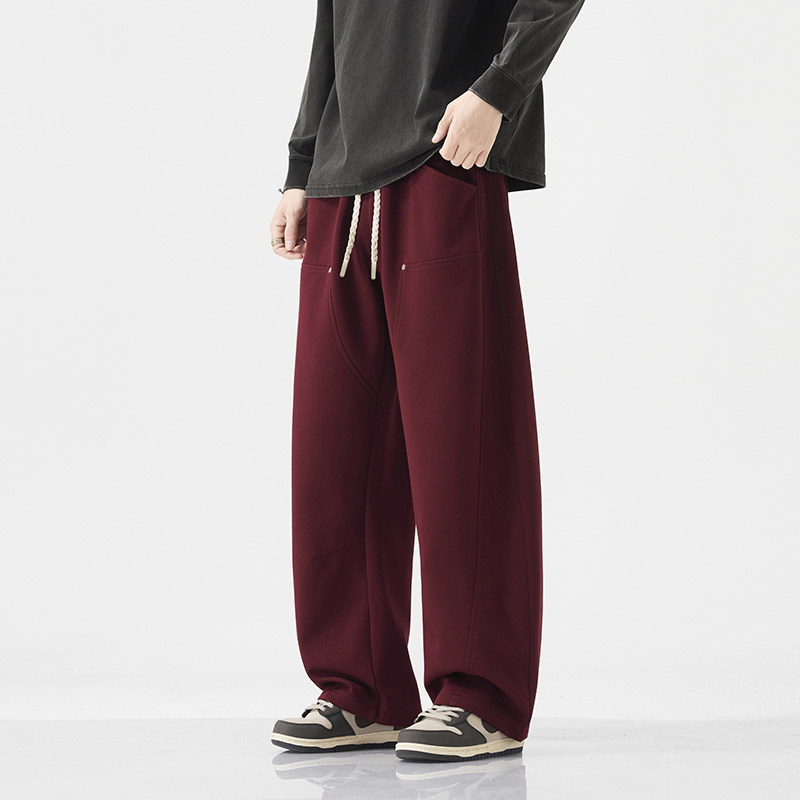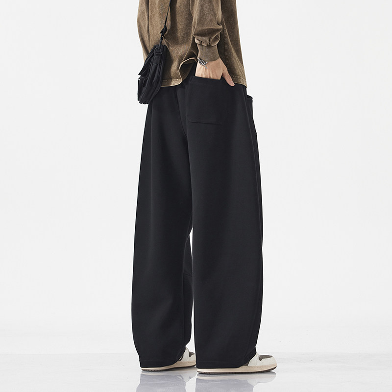 潮牌运动长裤 大码 美式 男秋冬青少年胖子宽松加绒卫裤 男 休闲弯刀裤