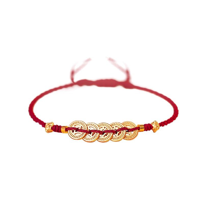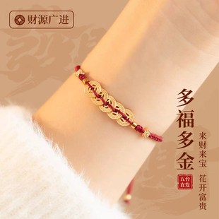 庆祥泰真品朱砂手串女款 官方旗舰店天然和田玉足金黄金手链女 正品