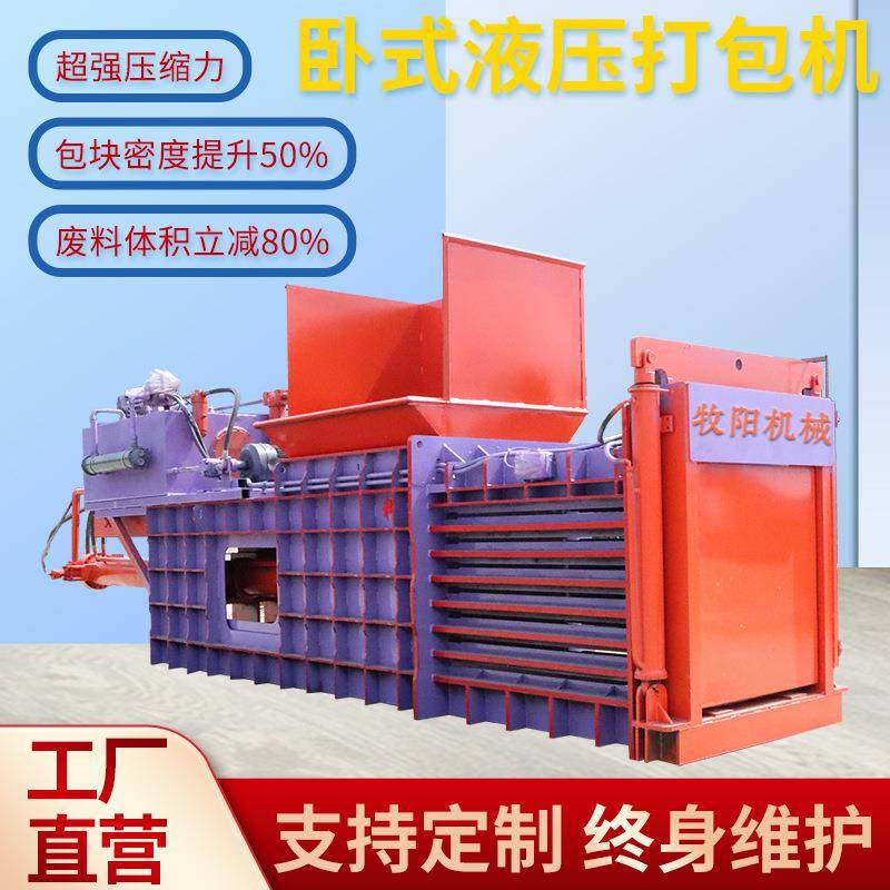 100吨卧式 塑料瓶液压打包机视频 稻草打包机废旧金属打包机卧式