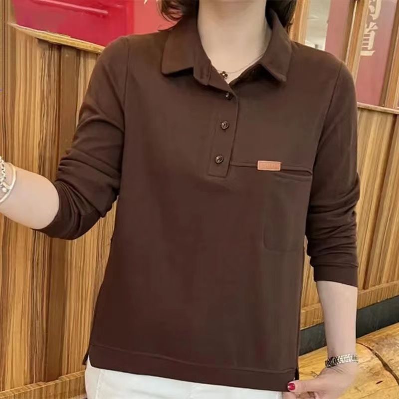 长袖 春秋翻领衫 中年纯色 女士上衣纽扣高档气质妈妈装 2025polo款