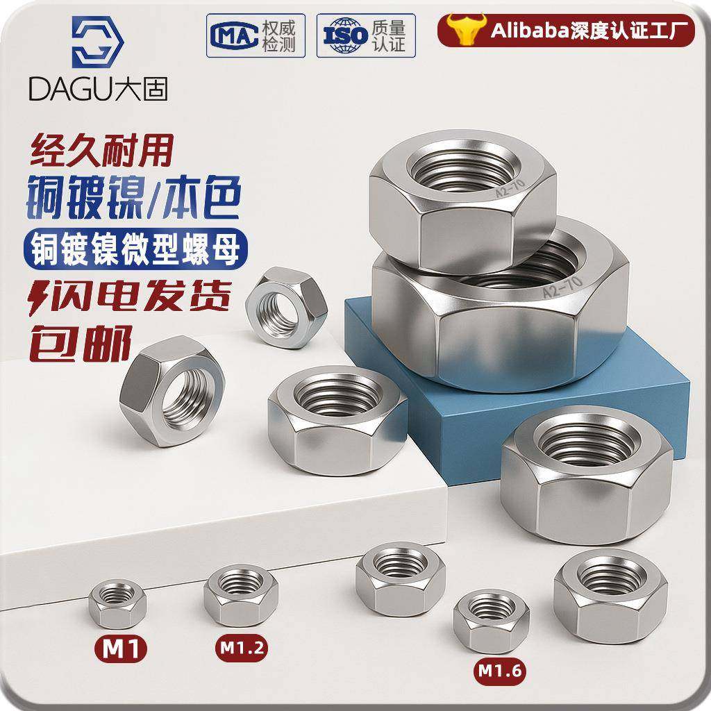 铜镀镍六角螺母螺帽螺丝微小螺丝母小螺帽母防松m373m1.2m1.m411.