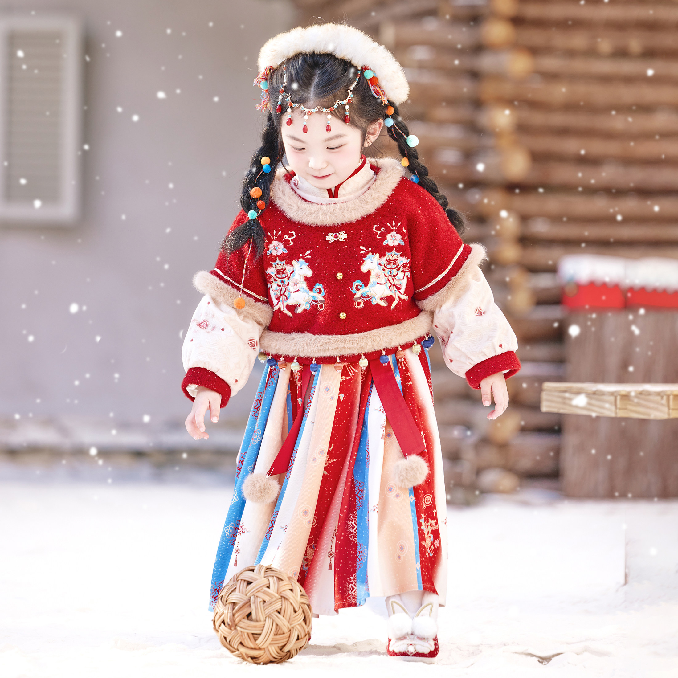 今兮古兮晚璃女童中国风汉服冬装 刺绣新年拜年服 加厚异域民族套装