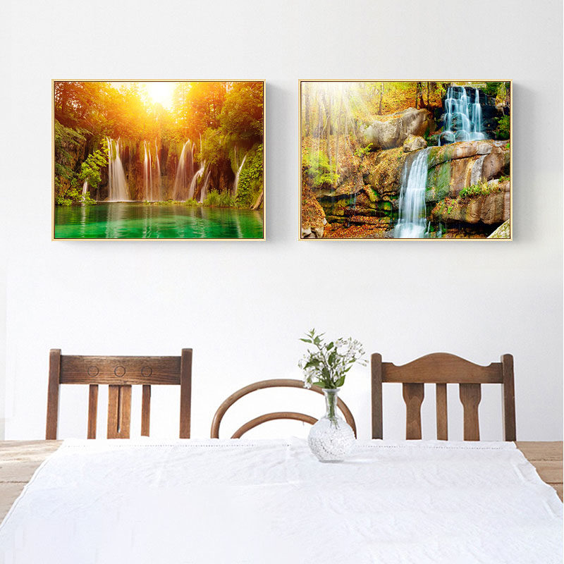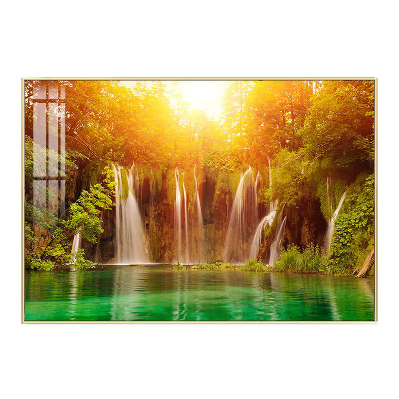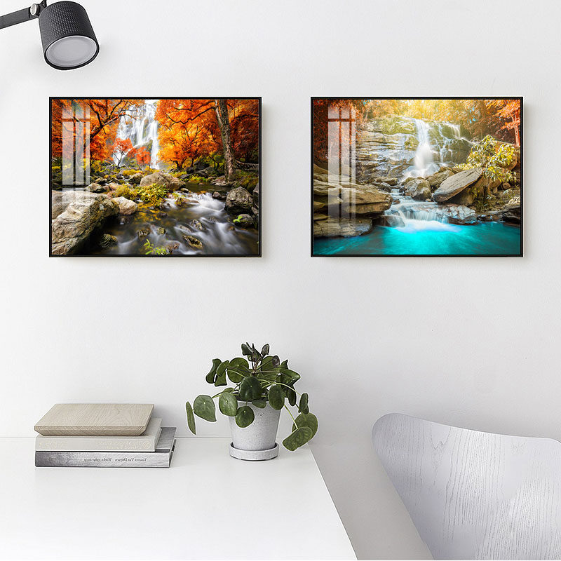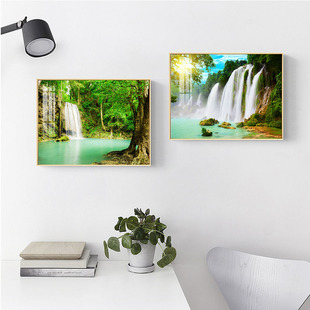 现简约装 饰画有框画瀑布风景挂画入户门厅走廊过道餐厅卧室壁画