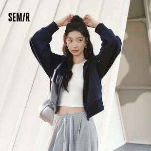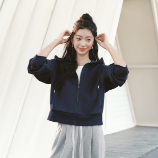 小个子时尚 森马外套女春季 连帽2026新款 灯笼袖 显瘦简约夹克 弯刀袖