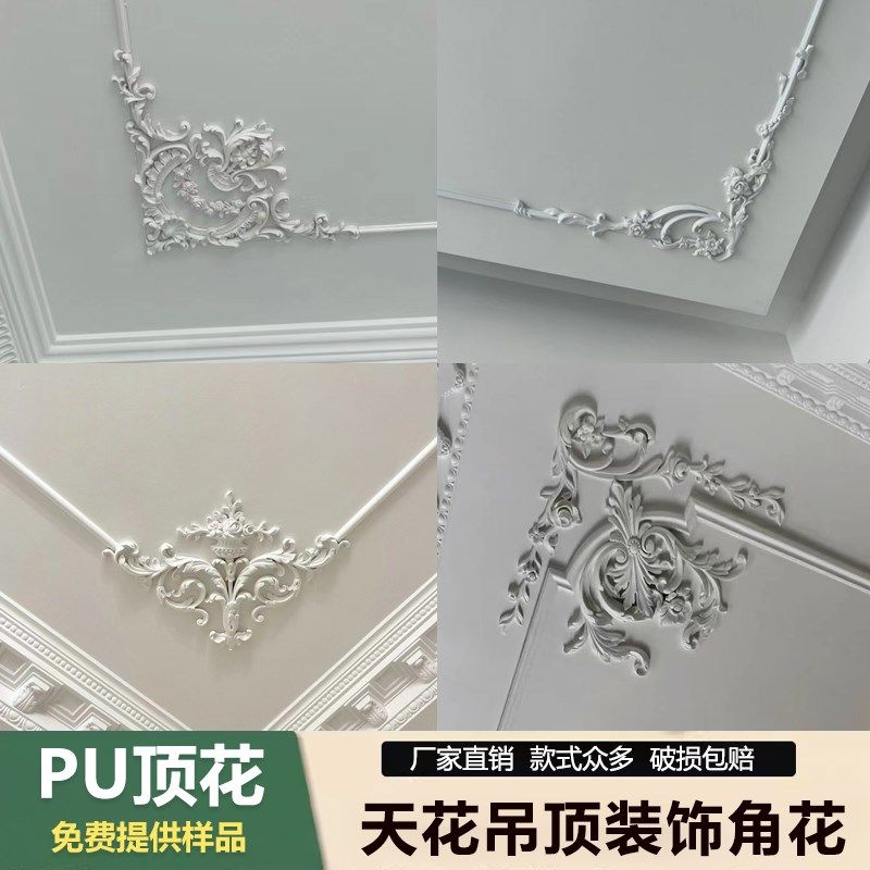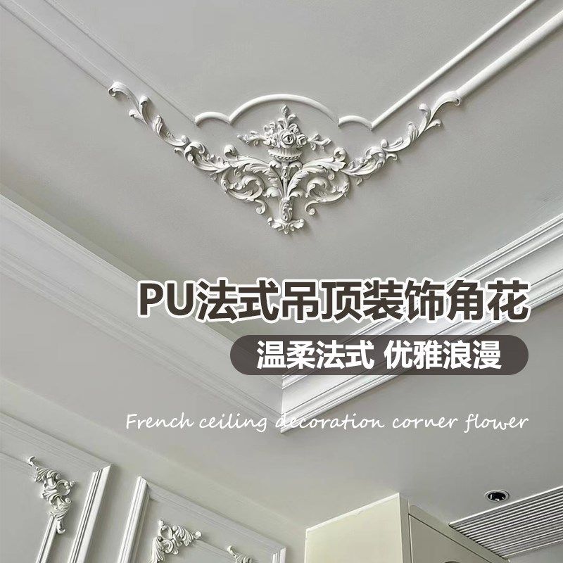 法式 饰造型边框线棚顶雕花组合仿石膏可刷漆 PU角花天花k吊顶装