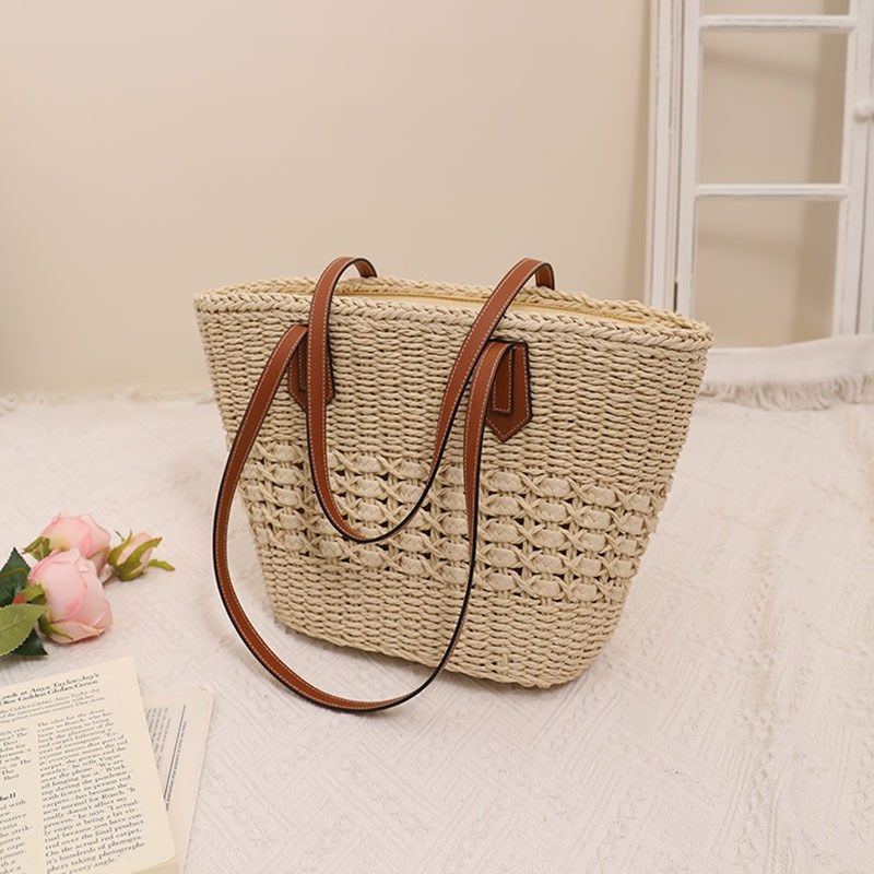 夏镂空草包编织包海边度假沙滩包女包 新款 法式 大容量单肩草编包