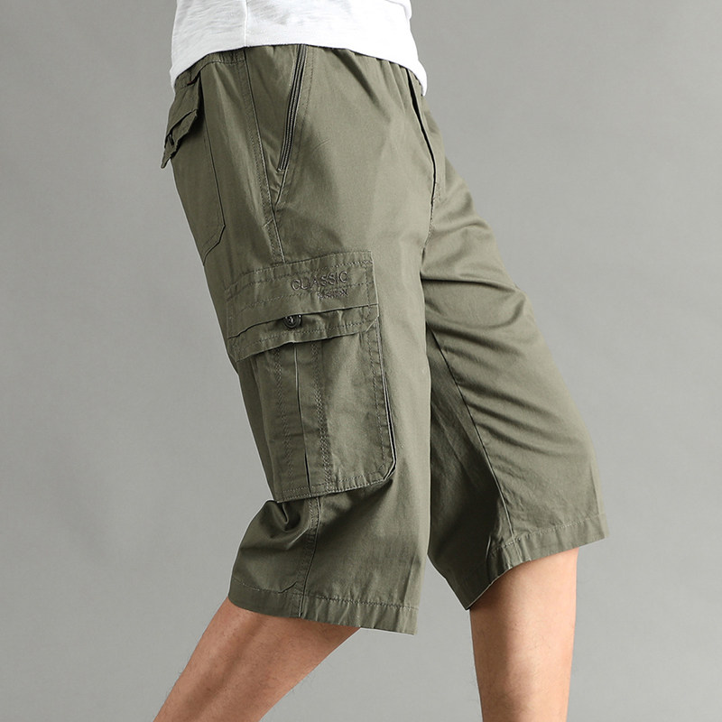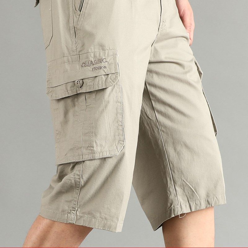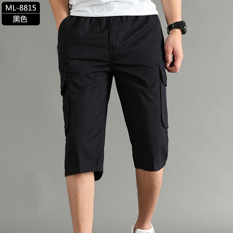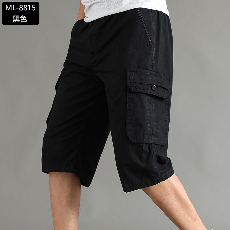中老年薄款 多口袋工装 沙滩裤 夏季 纯棉中裤 七分裤 宽松休闲短裤 男士