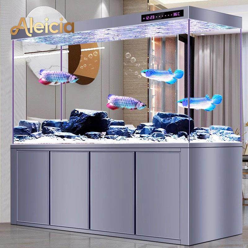 阿莱西亚龙鱼缸超白玻璃中型和大型生态无更换水族馆懒底过滤柜客