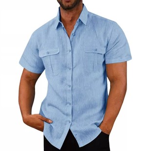 宽松休闲纯色长袖 秋季 上衣外套 男生2025新款 蓝色翻领水洗牛仔衬衫