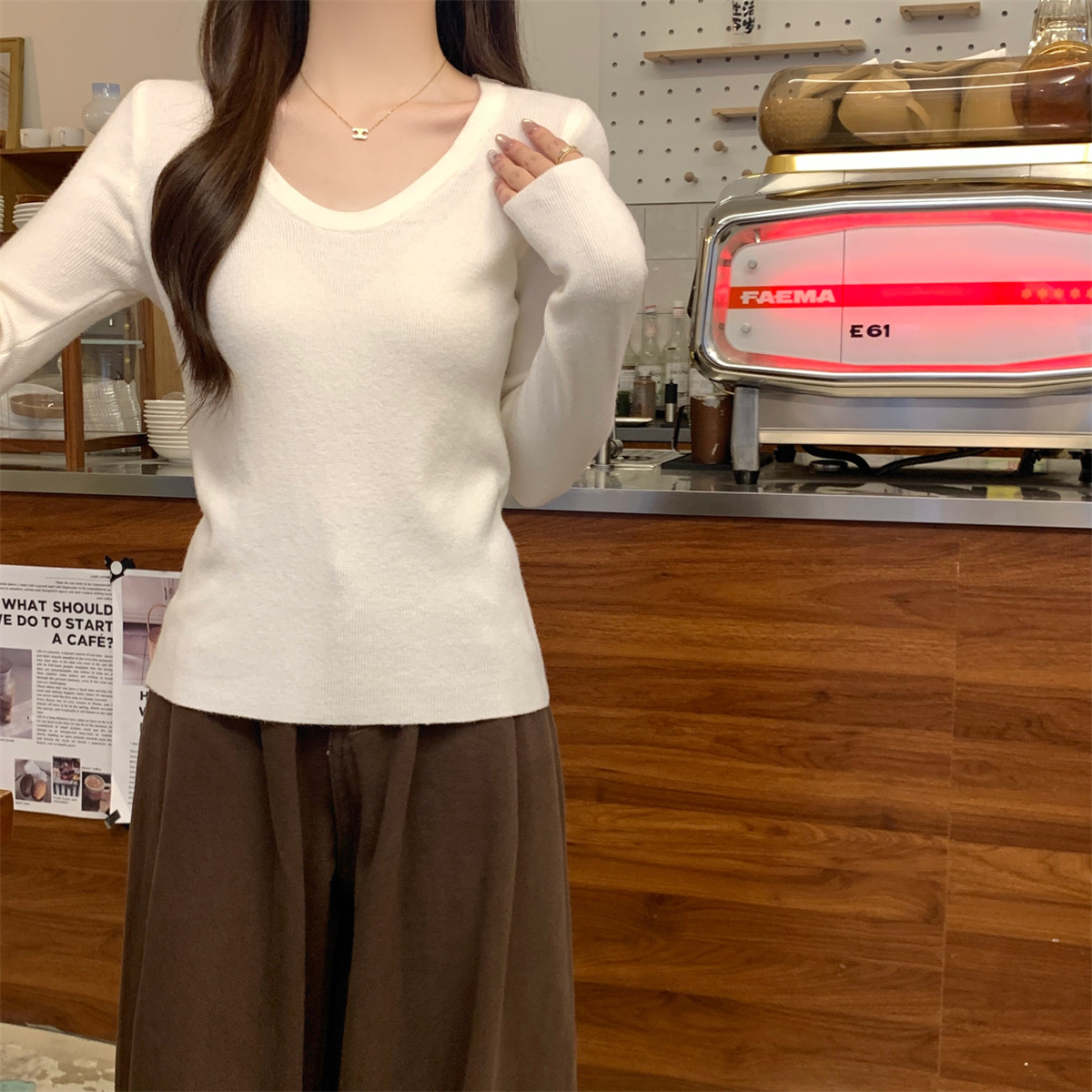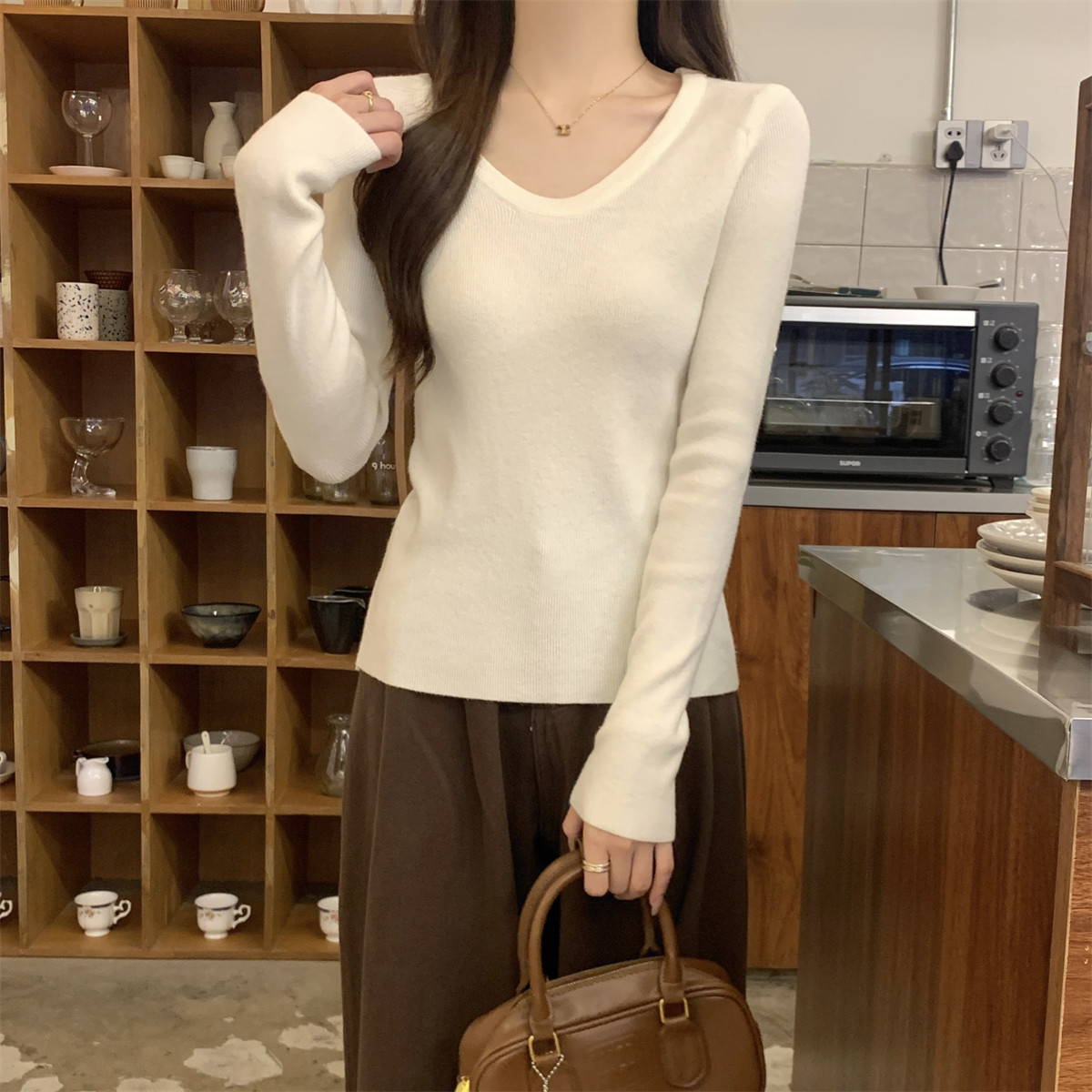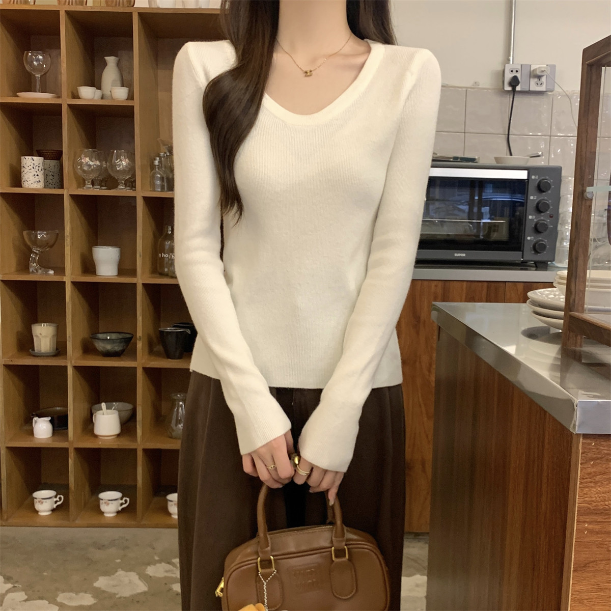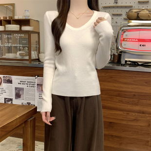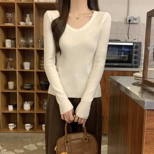女打底毛衣女内搭 休闲百搭气质低圆领软糯针织衫 法式 别致春秋冬季