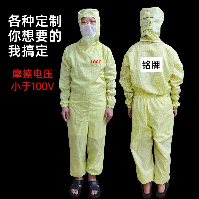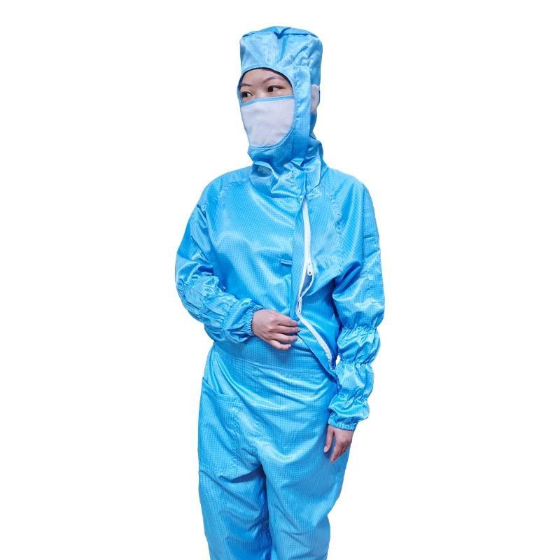 百级网格无尘服连体服有口袋斜拉链净化I实验室洁净衣车间防静电