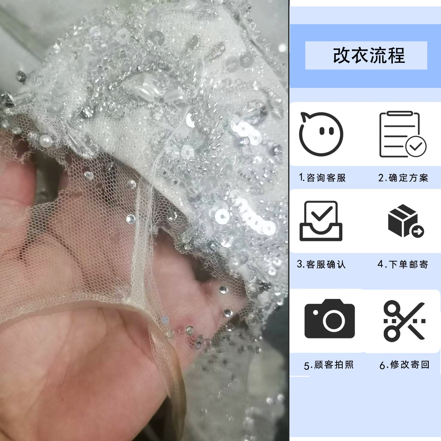 破洞修复剪拖尾 换面料换纱袖 婚纱礼服修改设计定制加装 饰改尺码