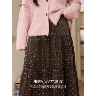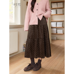 新款 咖色A字裙丝绒高腰裙子女装 咖色半身裙微胖mm冬季 时然大码