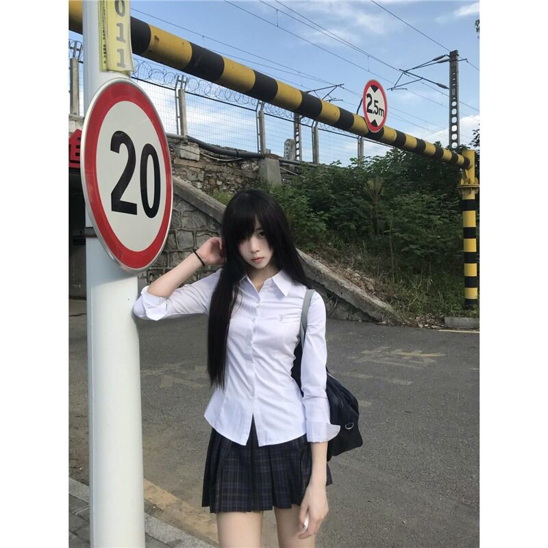 学院风jk制服修身 新品 女秋季 衬衫 显瘦刺绣衬衣 小栀川白色收腰长袖