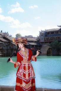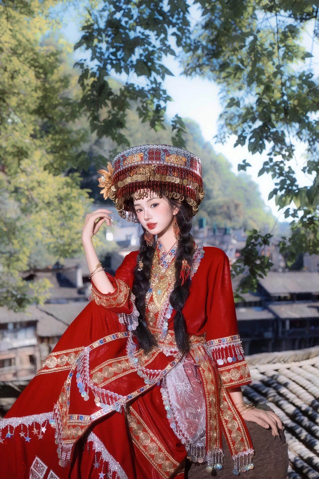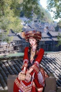 秋冬云南苗族红色喜庆盛装 超仙重工刺绣亮片少数民族旅拍高端服装