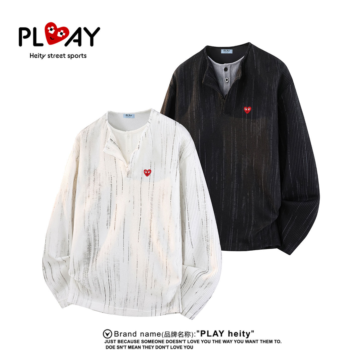 T恤内搭打底衫 回力加绒卫衣男士 加厚宽松白色长袖 2025新款 秋冬季