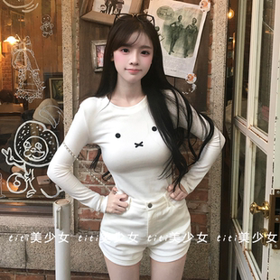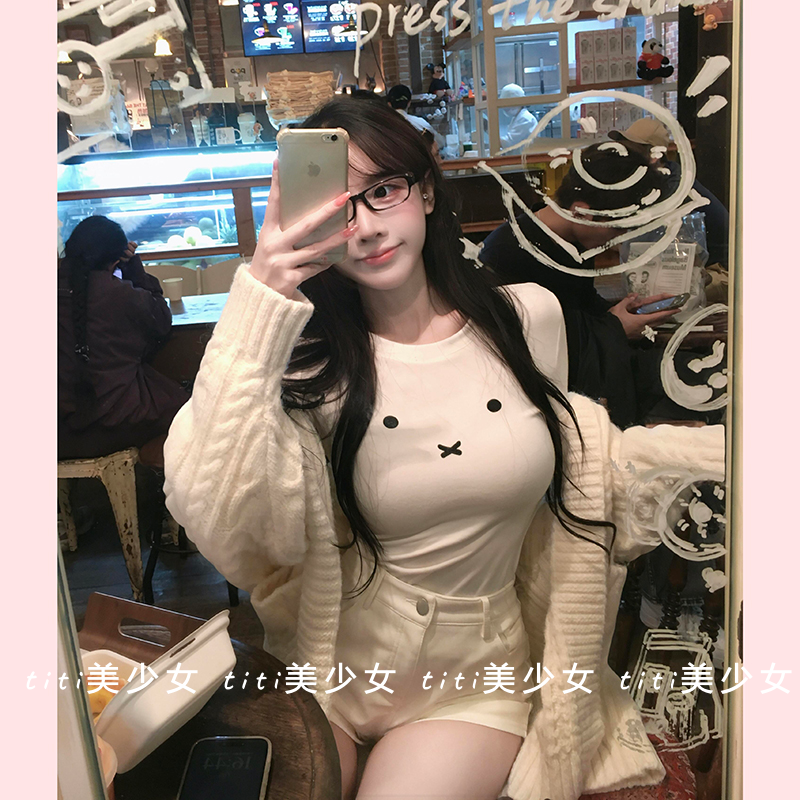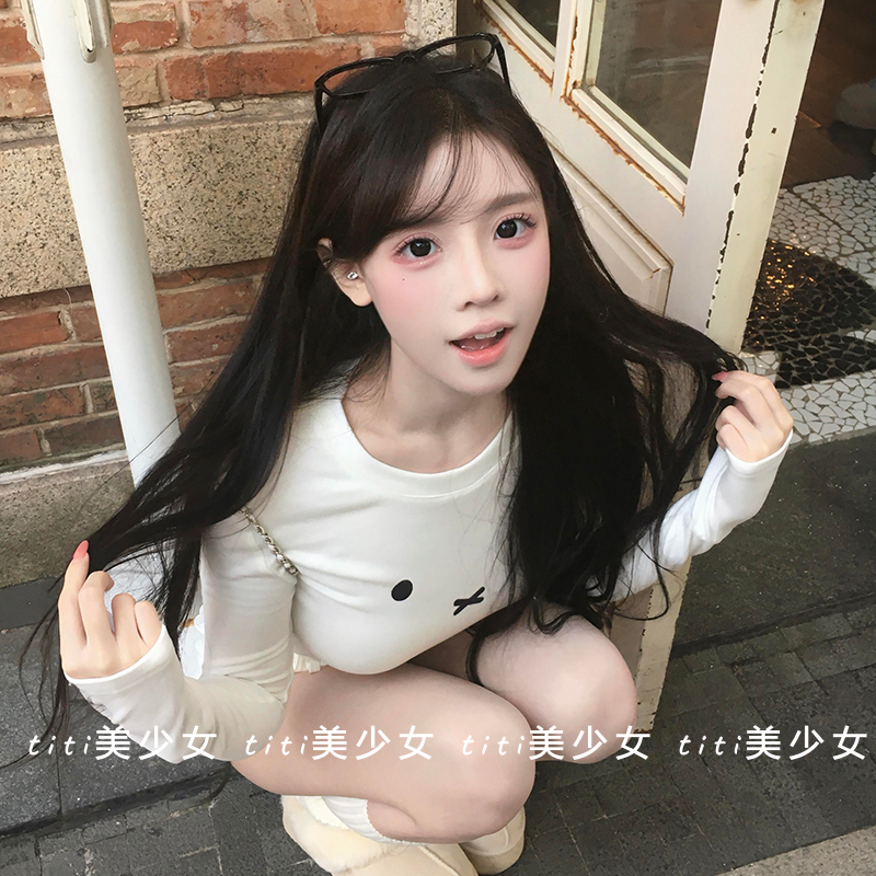 T恤可爱内搭修身 纯欲风德绒印花打底长袖 显瘦上衣 TiTi美少女