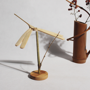手工磨削竹制蜻蜓摆设平衡竹蜻蜓家居装 饰小摆件小玩意竹质工艺