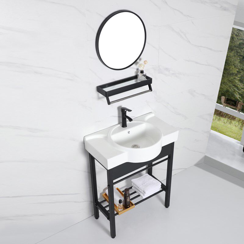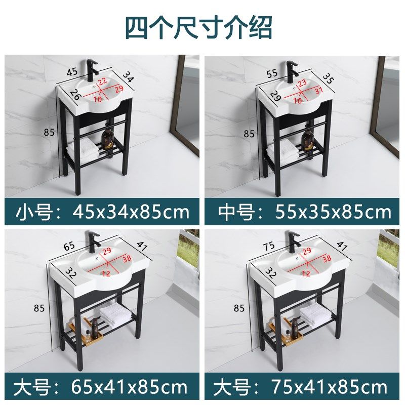阳台落地式 台盆卫生间洗脸盆不锈钢支架洗漱池 洗手盆台一体成型式