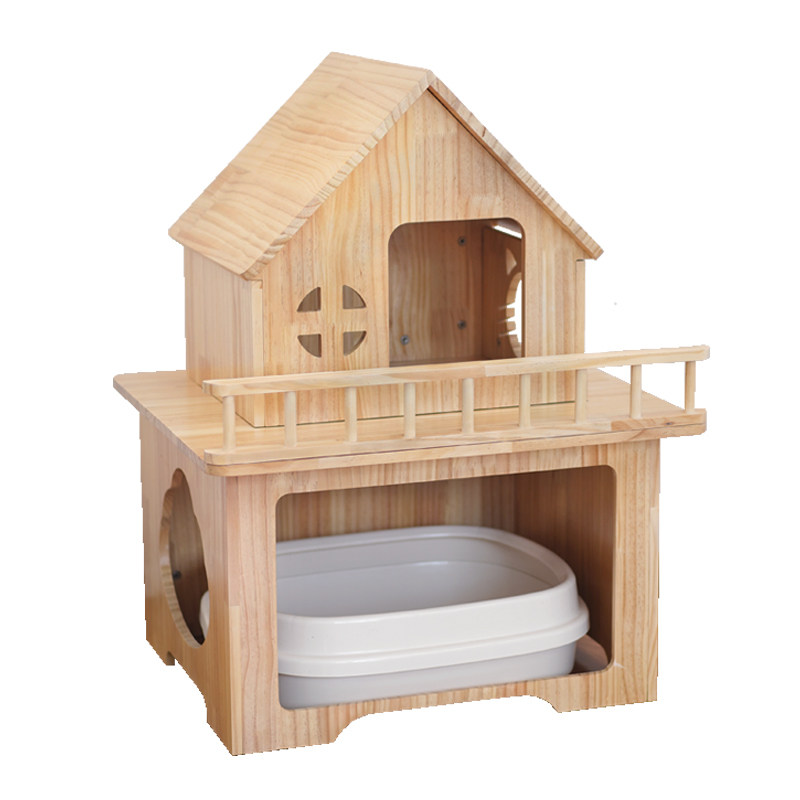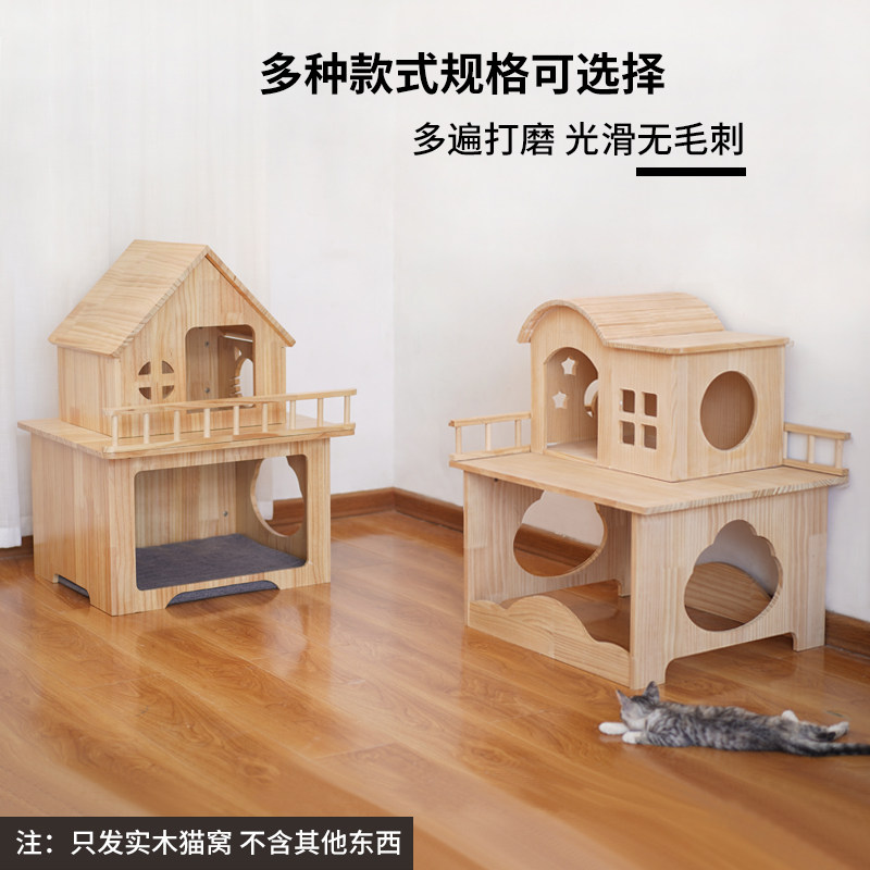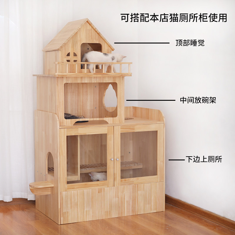 多功能实木双层猫窝猫厕所木质猫屋狗窝别墅一体不占空间四季 通用