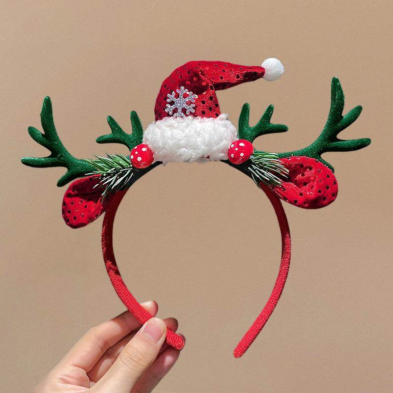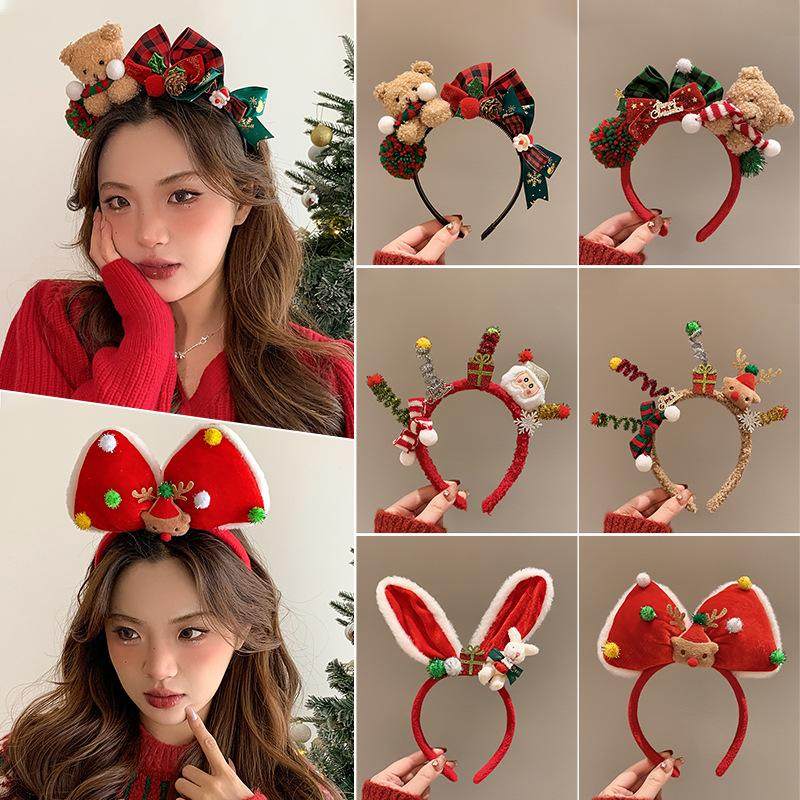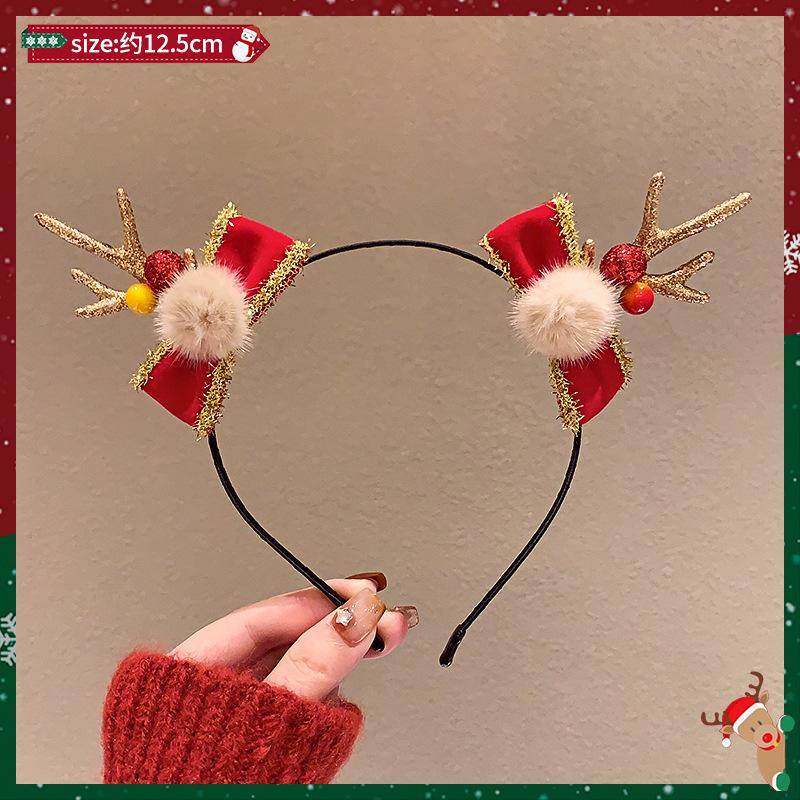 圣诞节装 饰蝴蝶结发箍女麋鹿角头箍儿童发卡表演拍照道具发饰品