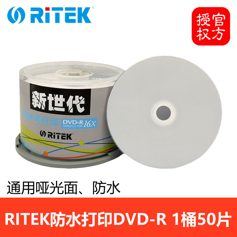 优选铼德可打印DVD光盘台湾RITEK防水DVD R刻录盘亮面光 R空白DVD