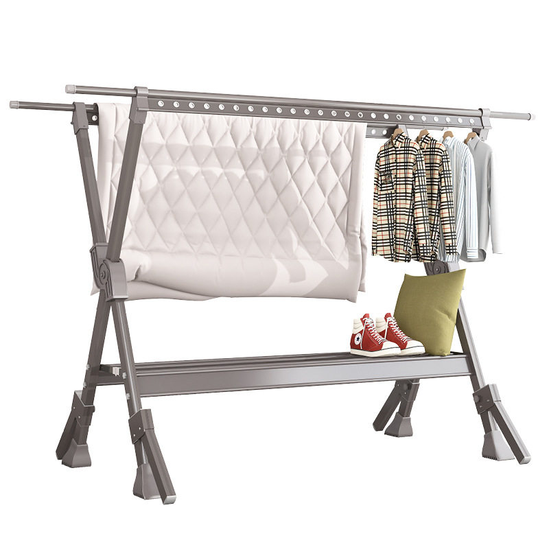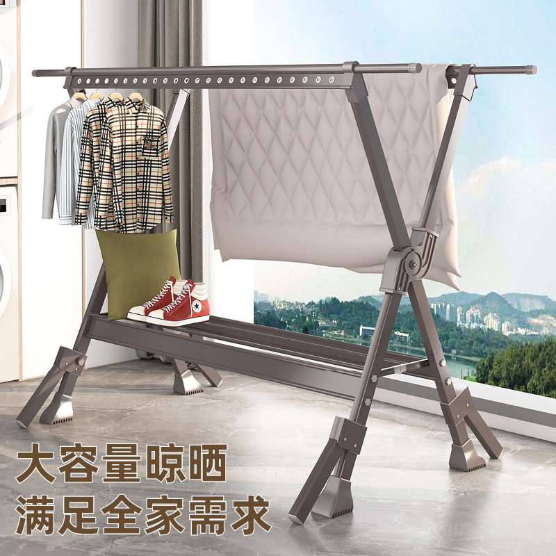 铝合室凉晒衣架家用晾衣杆晾衣架落地加粗加厚折叠室内阳台晒被子