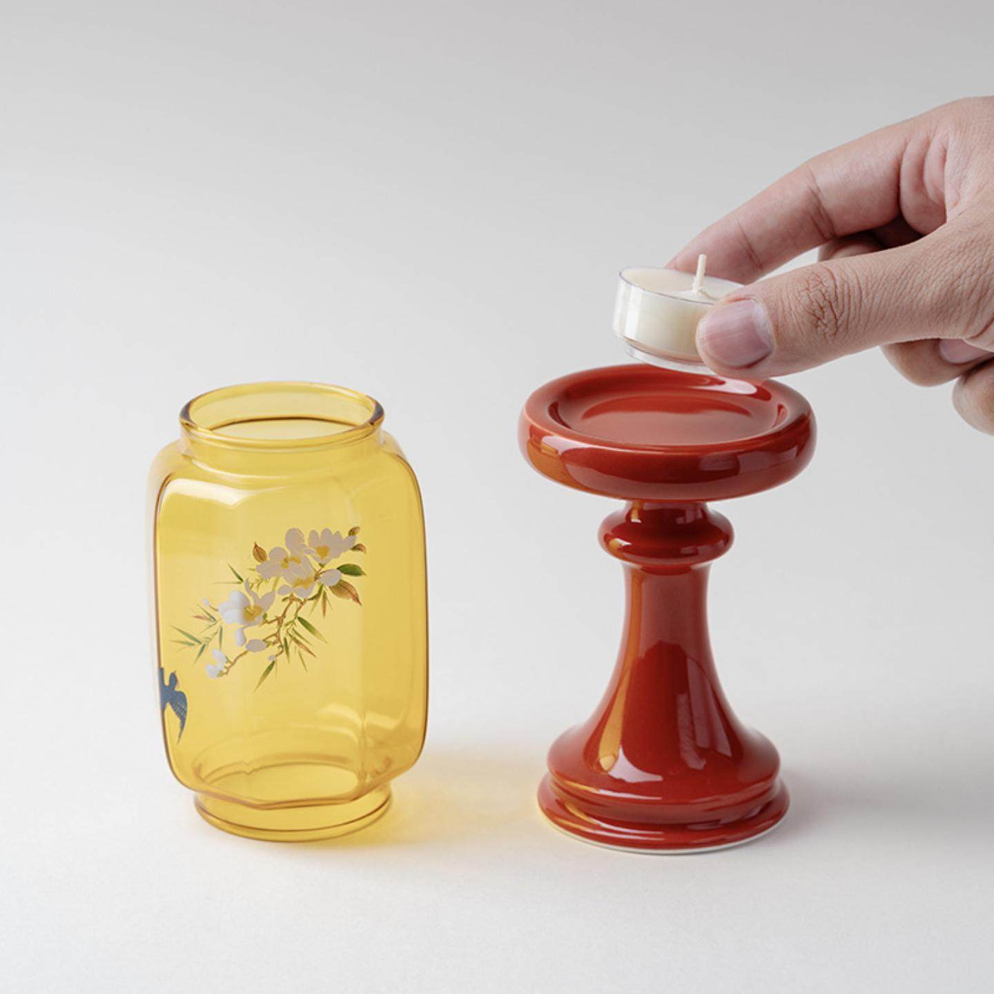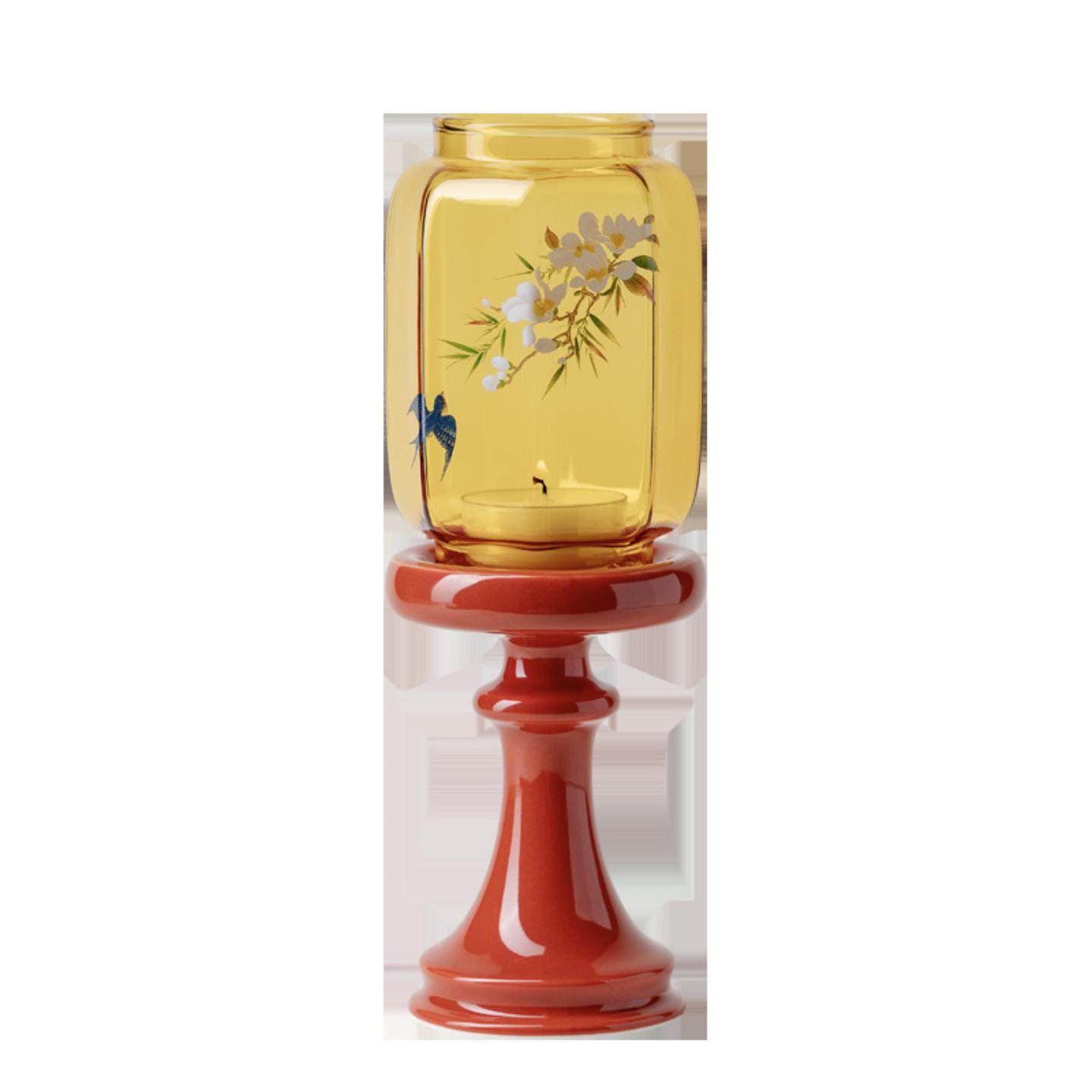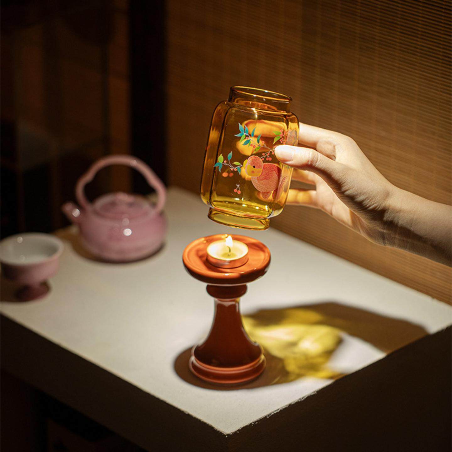 日式 摆件蜡烛烛台茶室氛围灯古风 春归故宫红明清烛台玻璃中式
