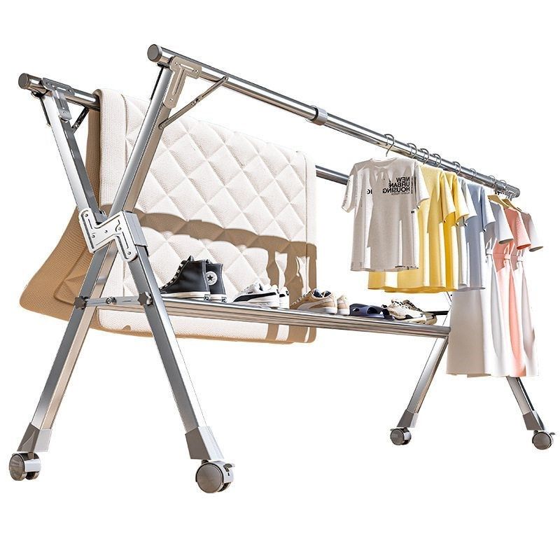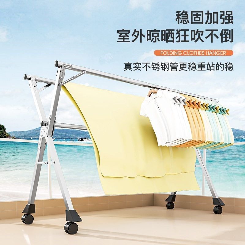 不锈钢伸缩折叠晾衣架加粗款 落地室内可移动晾衣架阳台晾被家用