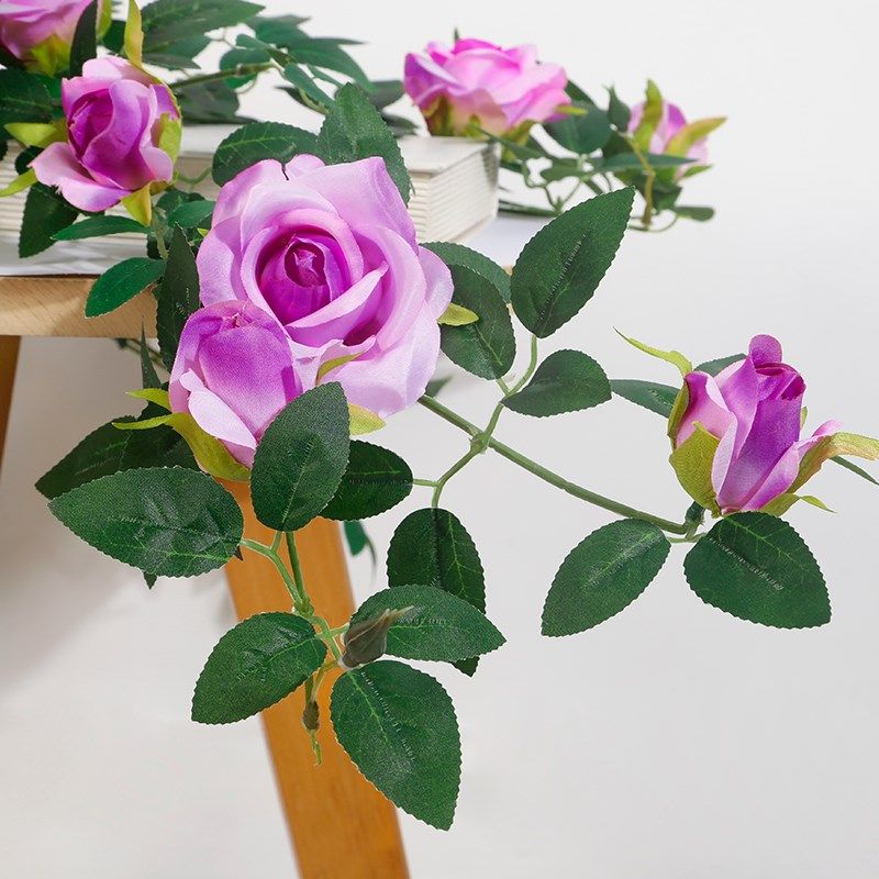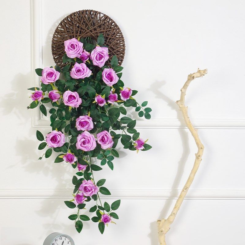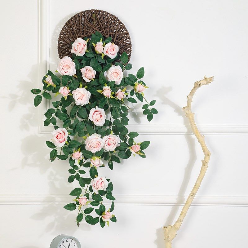 速发玫瑰花墙面吊花假花篮蔓吊藤绿设吊兰摆植塑料壁挂花装 饰植物