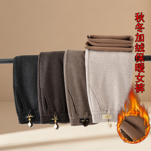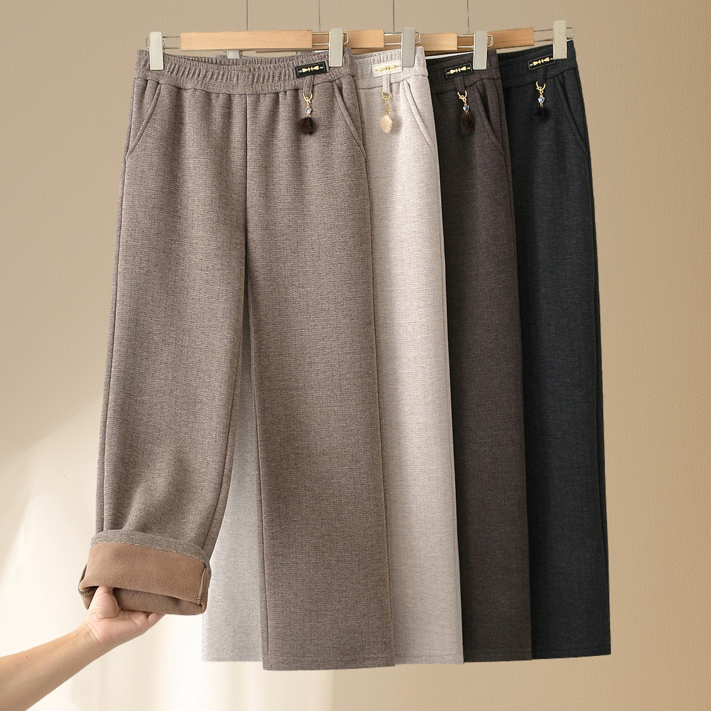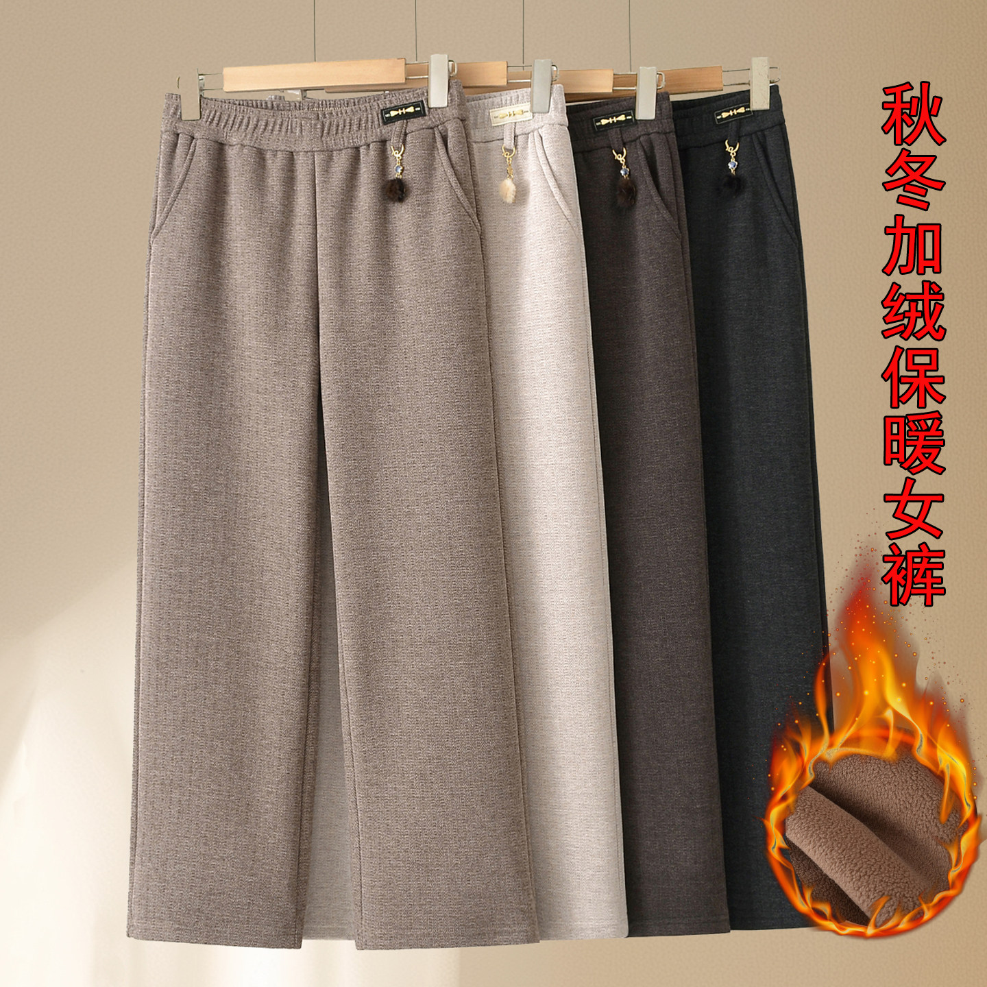 妈妈老人裤 中老年女秋冬加绒长裤 外裤 松紧腰大码 子 加厚休闲直筒裤