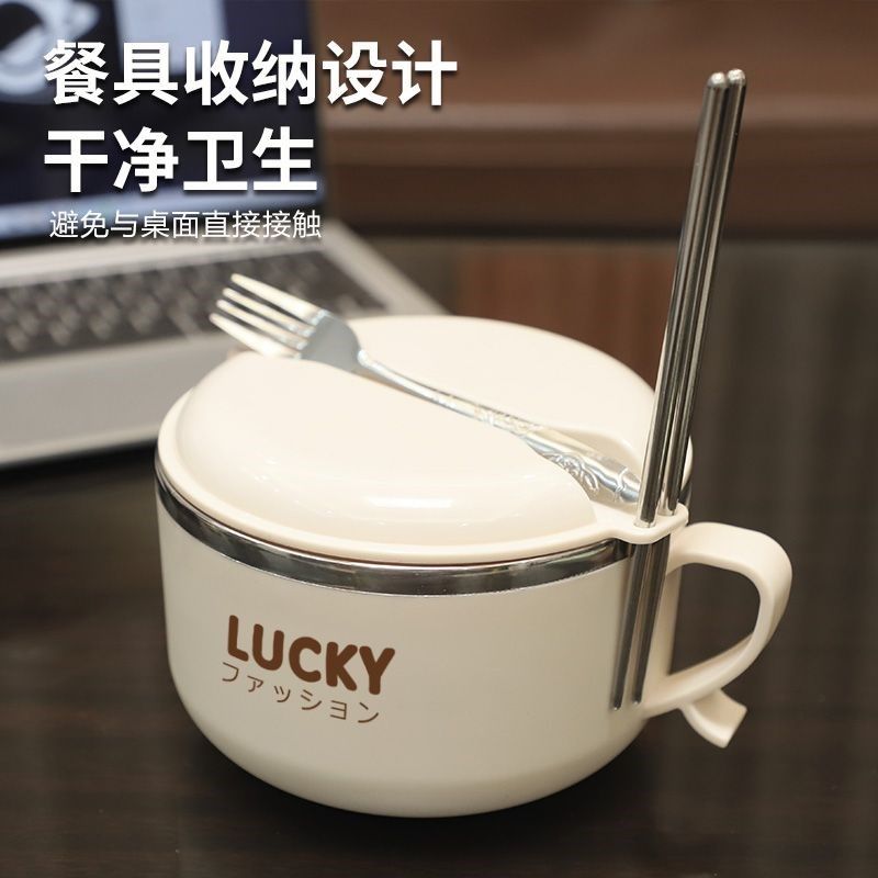 304不锈钢泡面碗学生保温饭盒带盖方便面碗家用宿舍寝室食堂汤碗