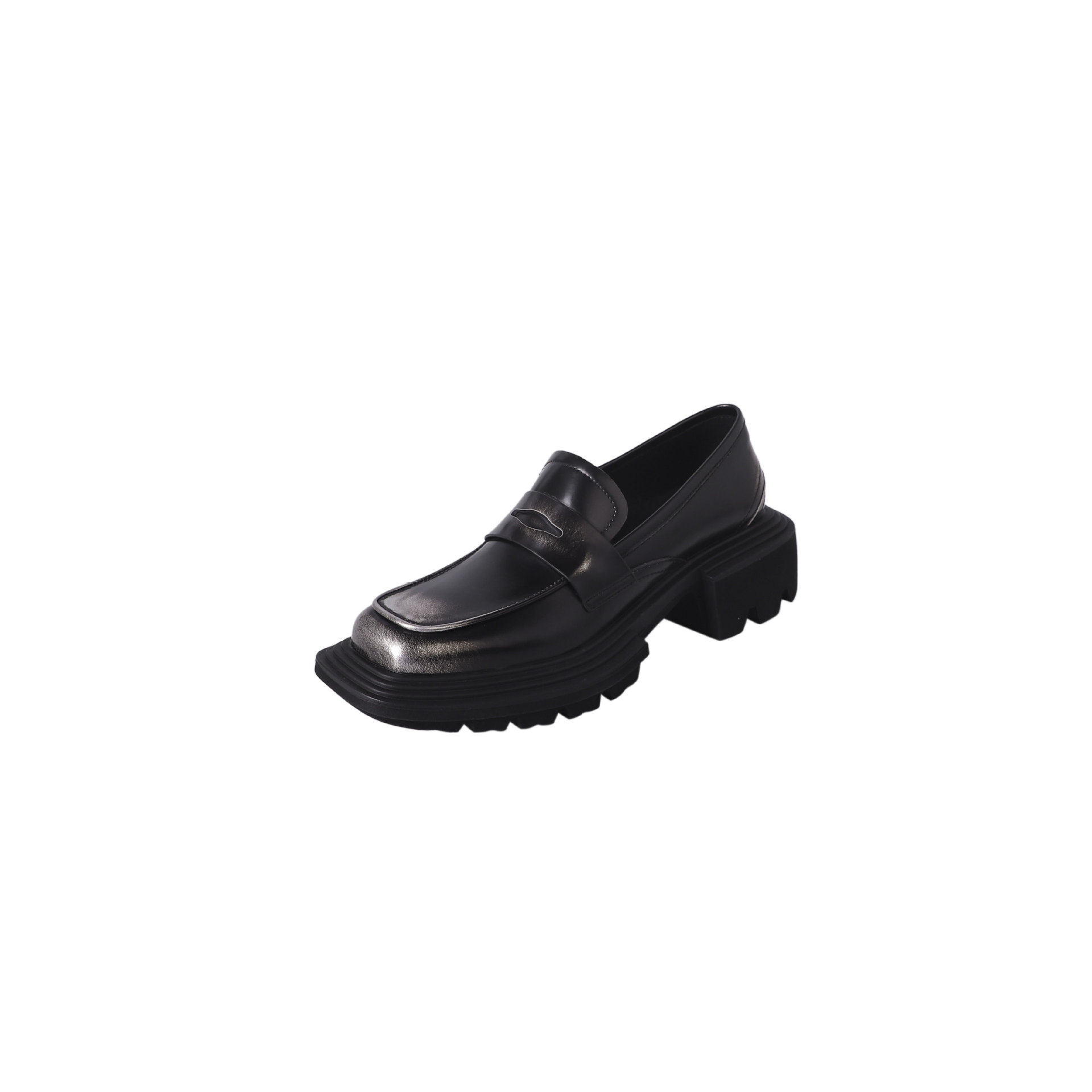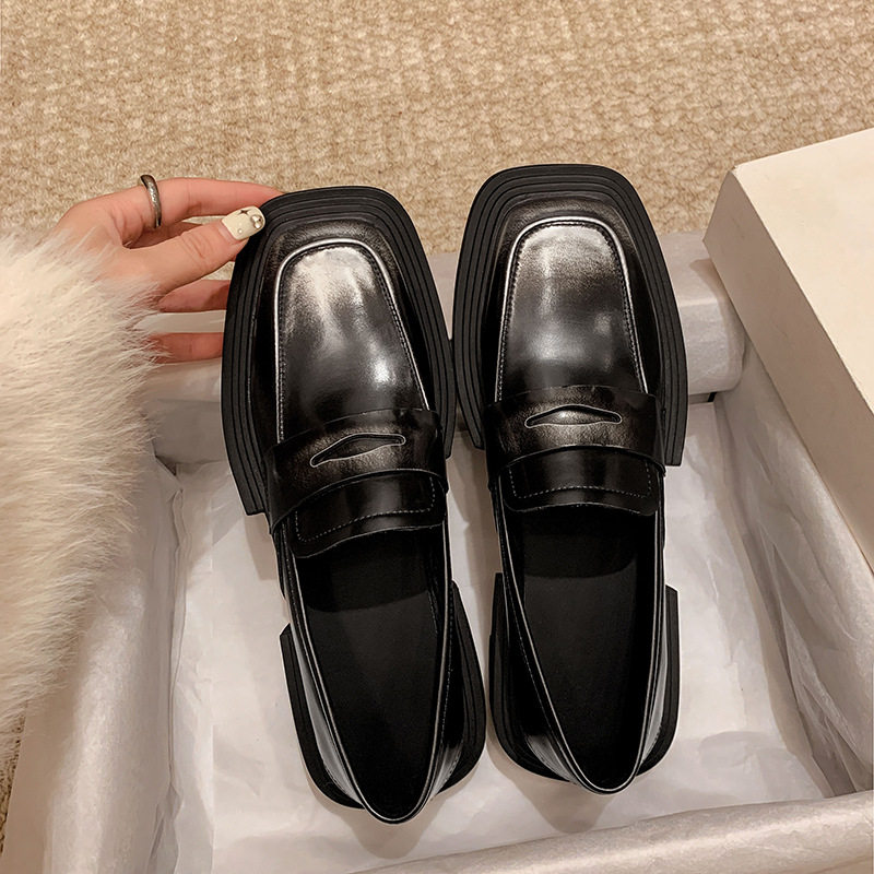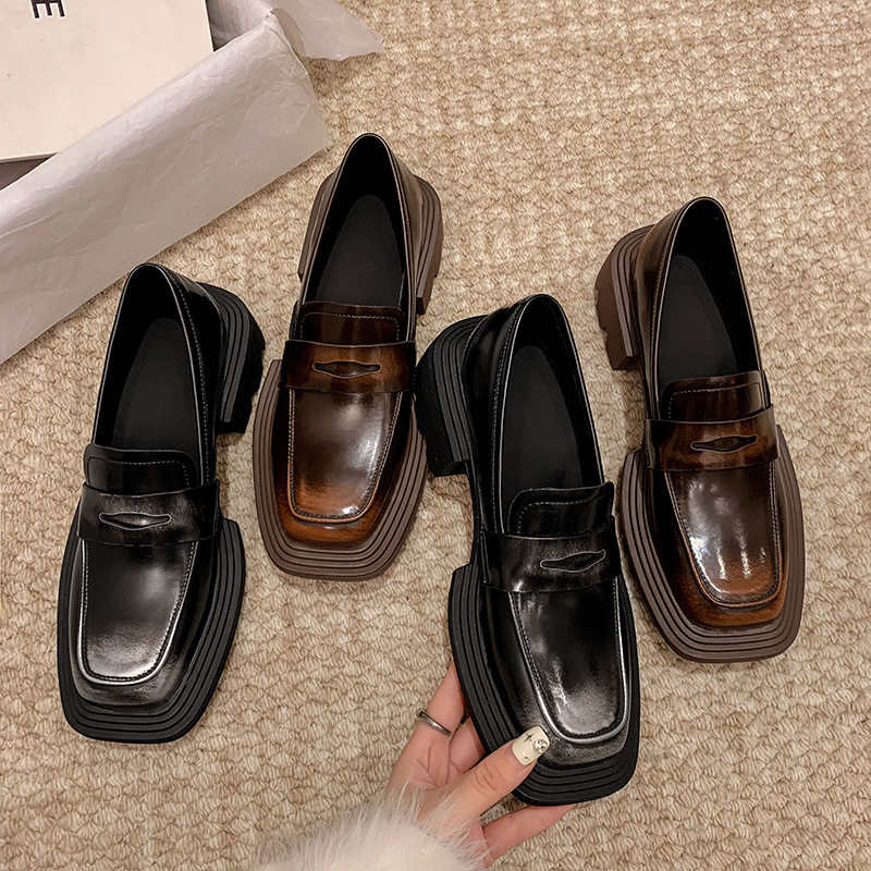 布洛克德比鞋 单鞋 真皮一脚蹬牛津鞋 方头擦色厚底懒人鞋 女2024新款