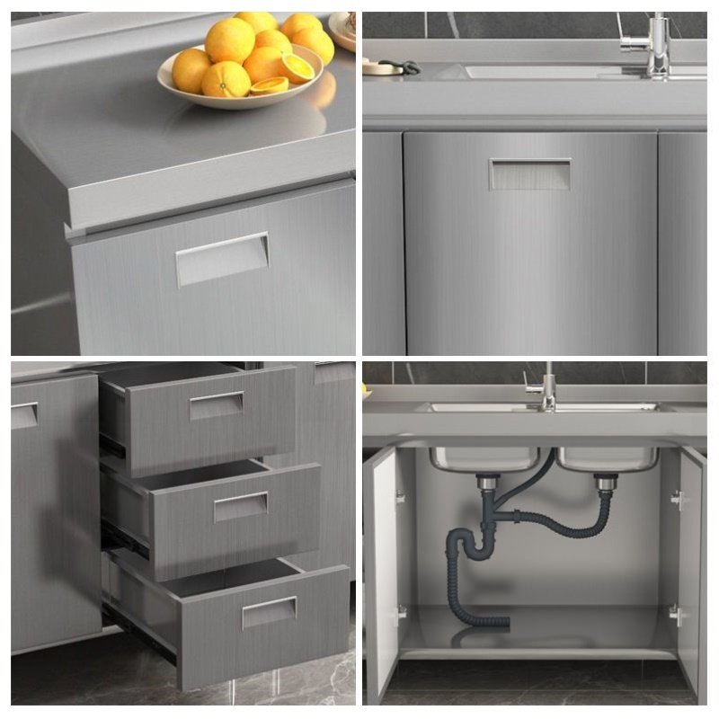 304整体全不锈钢厨房橱柜简易灶台一体储物收纳碗柜餐家用小户型