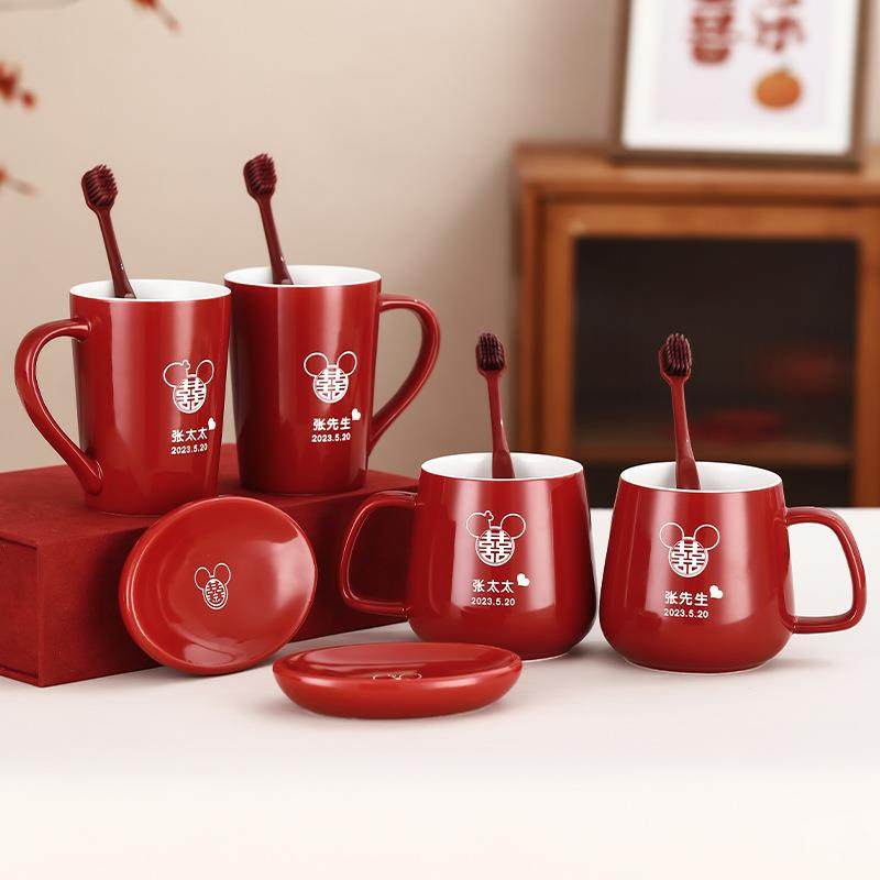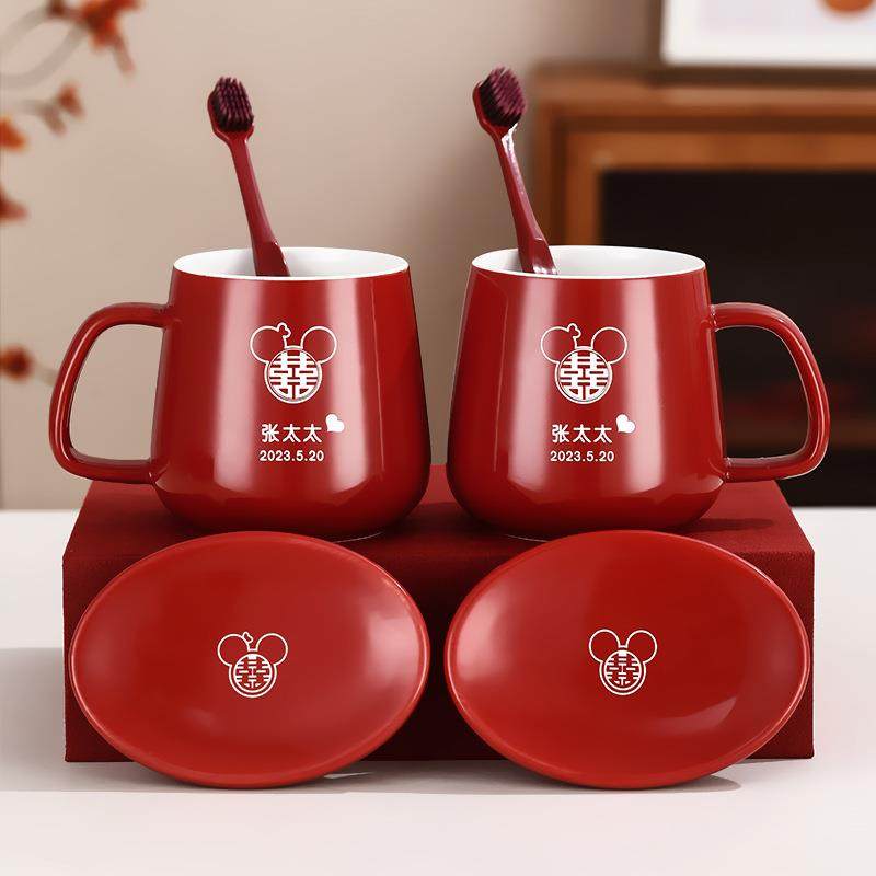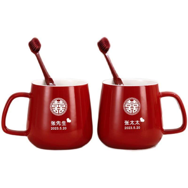 结婚漱口杯牙刷杯套装 情侣洗漱红色杯子一对婚礼高档陪嫁用品大全