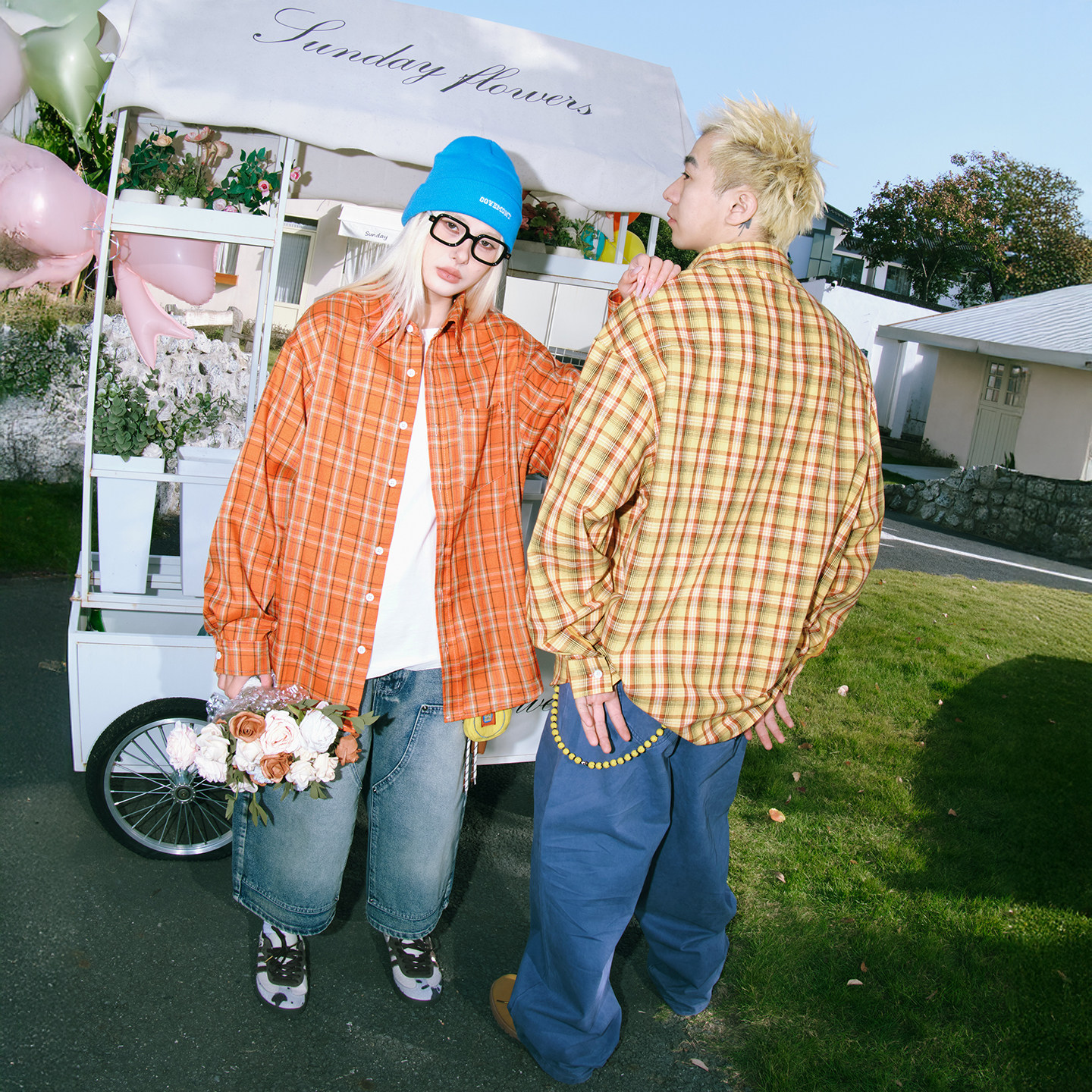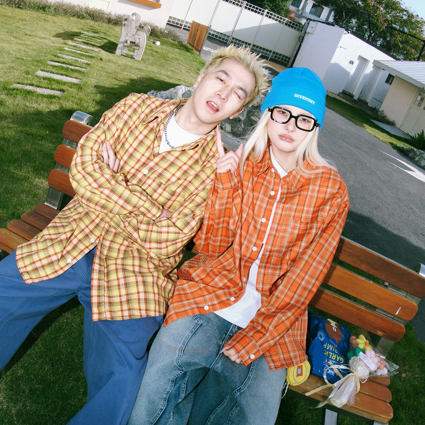 情侣款 lemanism美式 春秋季 男2026新款 宽松衬衣女 潮牌翻领格子衬衫