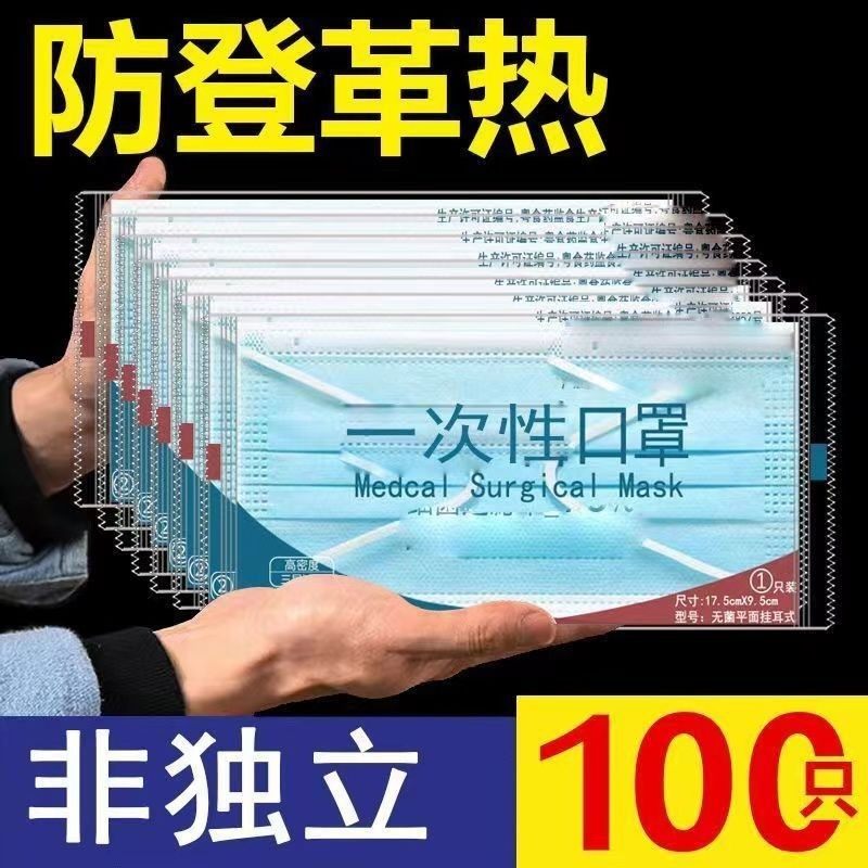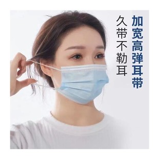 三层薄款 透气不勒耳 口罩成人蓝色一次性非独立包装