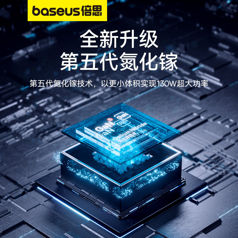 倍思130W氮化镓充电器65W笔记本电脑充电头适用苹果iPhone15promax快充头Typec插头100W多口安卓macbook手机