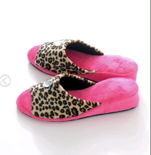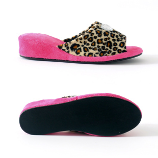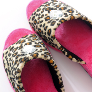 拖鞋 豹纹可爱家居鞋 高跟鞋 舒适家居坡跟拖鞋