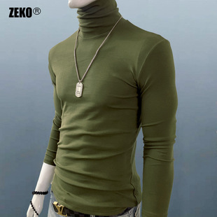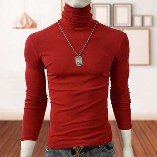 t恤休闲紧身堆领秋冬季 纯棉弹力男士 保暖内衣长袖 修身 高领打底衫