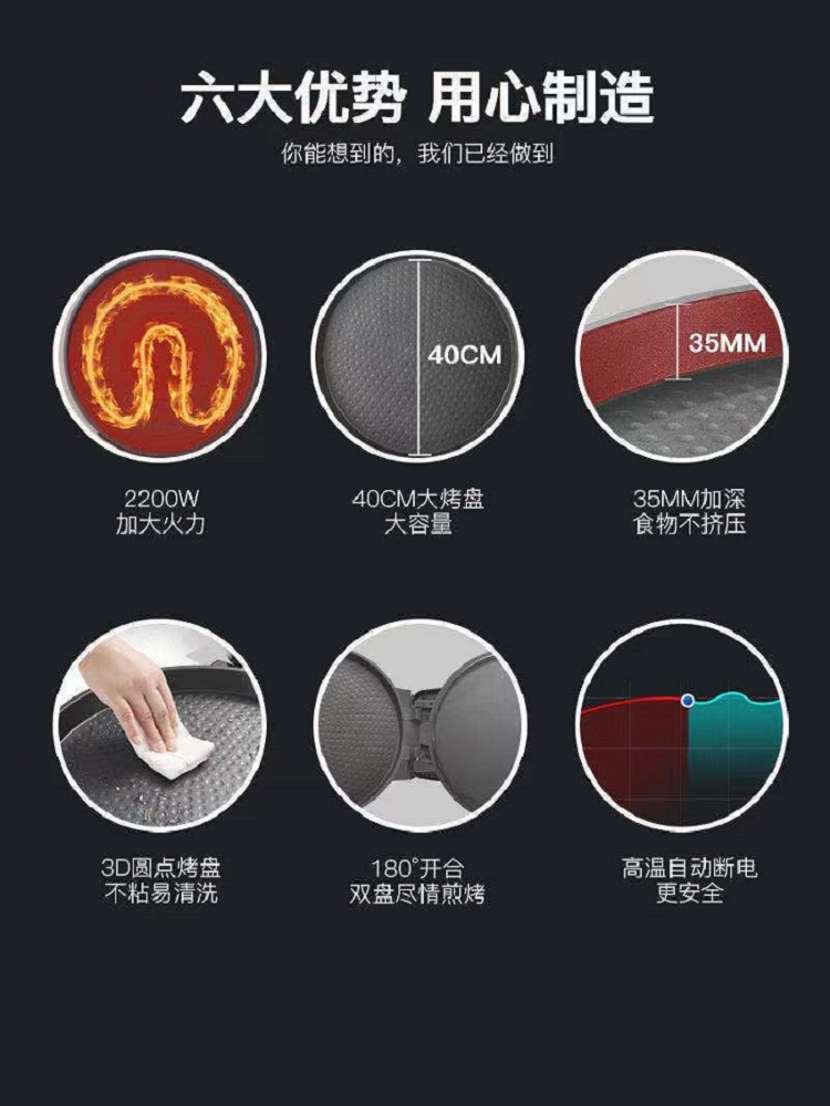 40CM大口径电饼铛家用双面加热可商用不粘锅加深加大煎饼锅烙饼锅