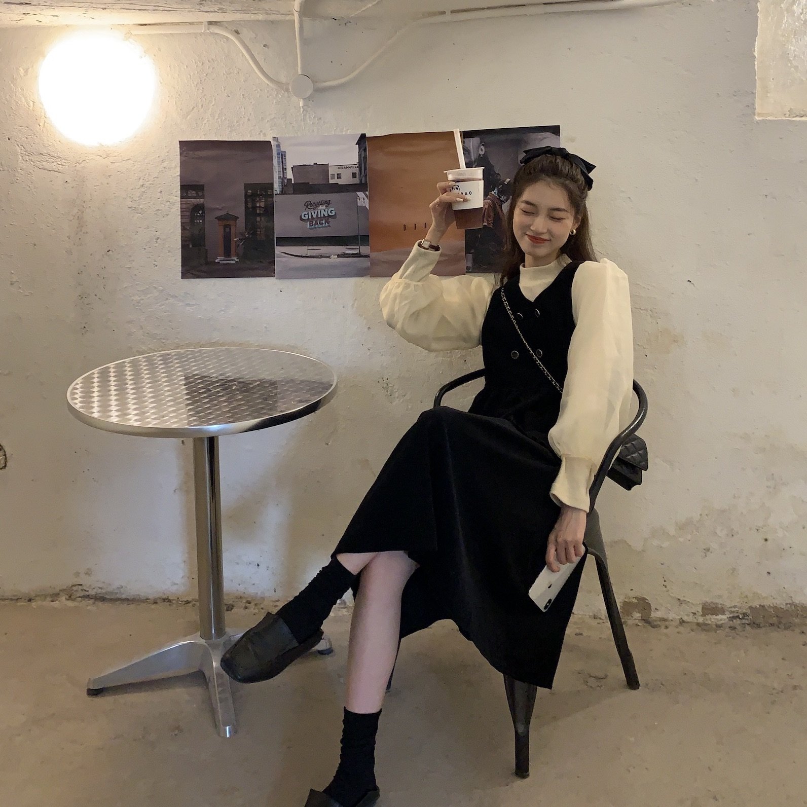 纯棉双排扣双兜收腰复古背心连衣裙子 u欧尼氛围感 source with