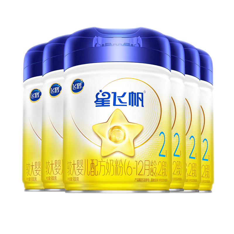 育儿补贴 旗舰 飞鹤星飞帆2段婴幼儿牛奶粉二段900g6罐官方正品