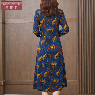 羊绒裙 春季 香妮芬时尚 洋气抽绳中年妈妈休闲连衣裙高贵2026新款