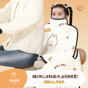 通用 加绒加厚电瓶摩防水防风罩四季 亲子款 电动车挡风被带小孩冬季