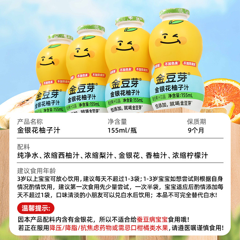金豆芽金银花柚子汁小孩果汁饮料小袋便携装 无添加饮品葫芦瓶装