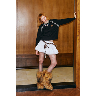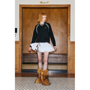 新款 不规则大翻领露肩混色慵懒毛衣秋季 上衣女 慵懒美学 GV大白哥