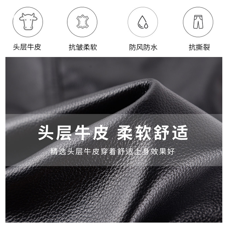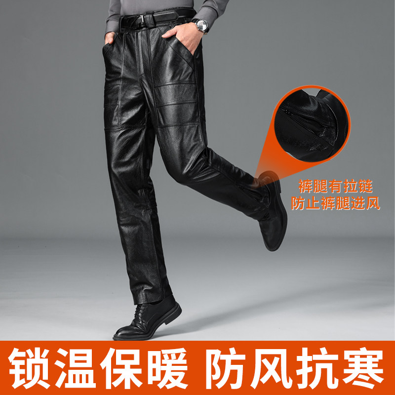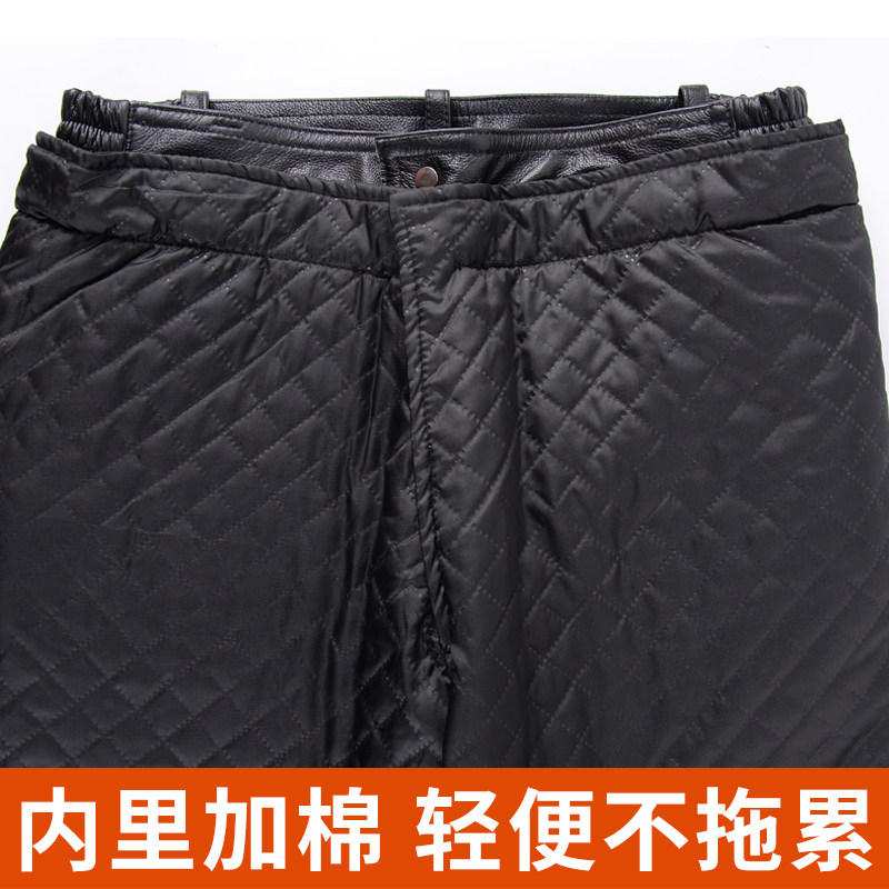 摩托车防风防水真头牛皮外卖员骑行裤 加棉保暖裤 子 男真皮冬季 皮裤