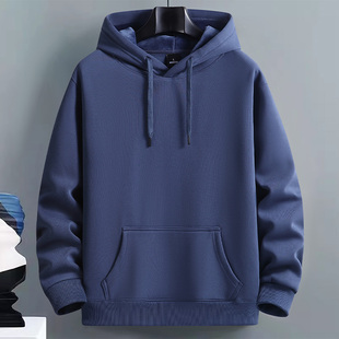 学生纯色外套潮 百搭保暖帽衫 秋冬新款 加绒连帽卫衣男青年宽松大码